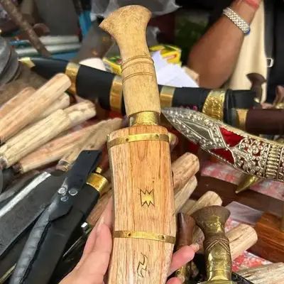 The Ghorka or kukri knife is a symbol of the Gorkha warrior tradition — functional, curved, and perfect as a collector’s item or outdoor tool. These are often beautifully crafted with traditional designs.